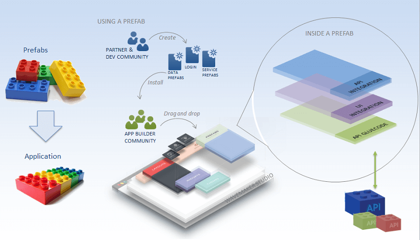 2. as API integrated components: WaveMaker UI components can be made to interact with the Prefab APIs to customize the Prefab behavior; prefab_apicomp