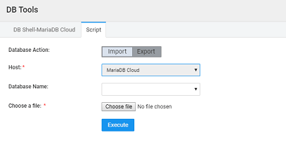 1. Select the database server on which the script needs to be executed by selecting from the options in the Host field. Currently, the only server option is MariaDB Cloud database server.