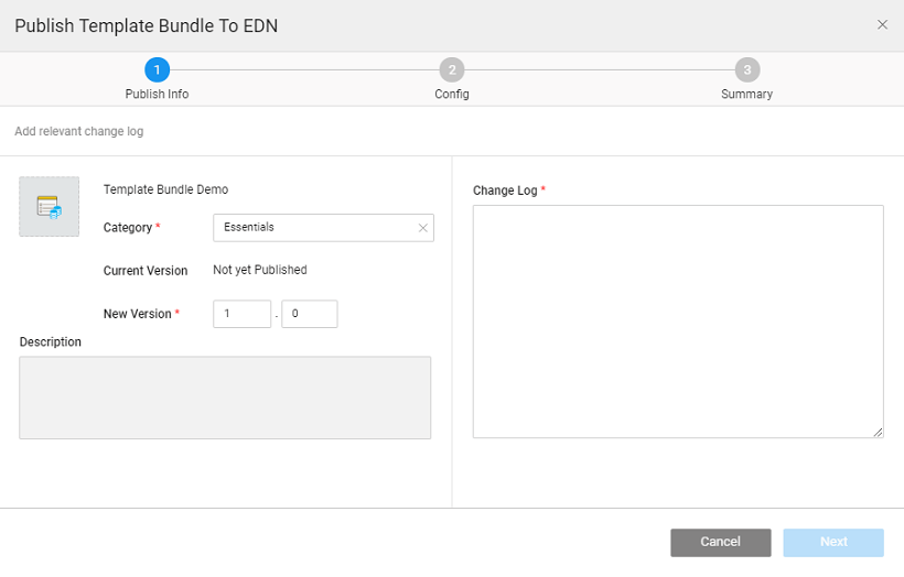 3. Enter the Name and Description for the Template Bundle