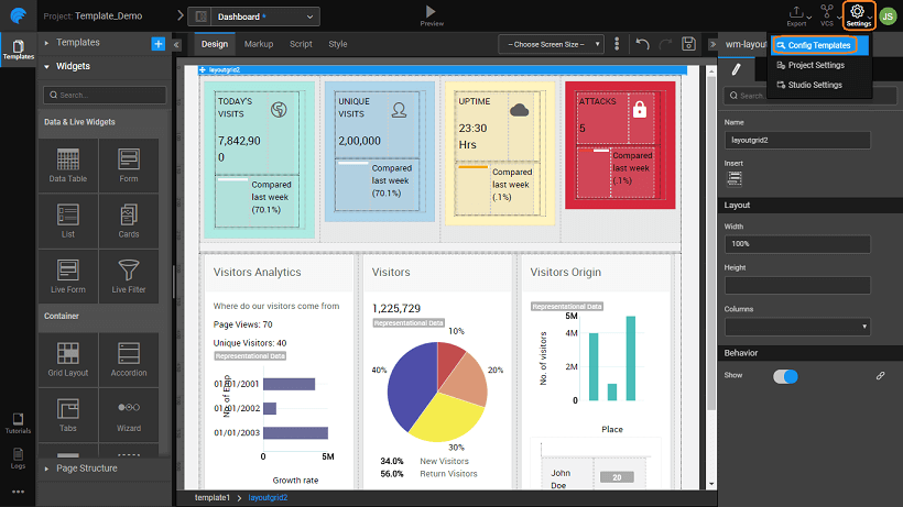 5. You can create and design a new page like any other page of an application. You can use an existing template and make changes. Here we have created a Dashboard page and are making changes to the existing Sales Dashboard template.