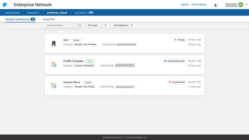 Artifact Repository is a collection of artifacts or resources used across application development lifecycle in WaveMaker platform. It allows for easy exploration and discovery of Artifacts available to the developer network. These artifacts include: