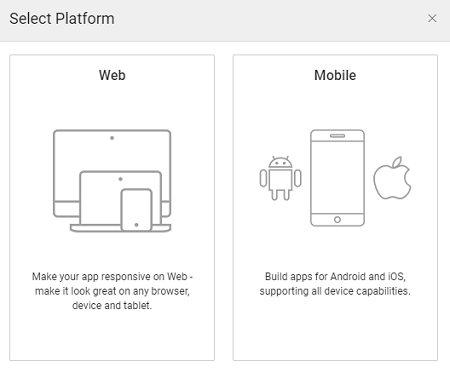 • Responsive Web Apps which can be built just like any other web app, with the capability to adapt their UI to the size of current browser window. Web apps built using WaveMaker Studio are responsive by default. See here for how to build Web Responsive Apps link. Responsive web apps, however, do not have the ability to leverage device capabilities such as the use of a camera, accessing contacts, storing a file on the device etc. and accessing the app when offline or not connected.