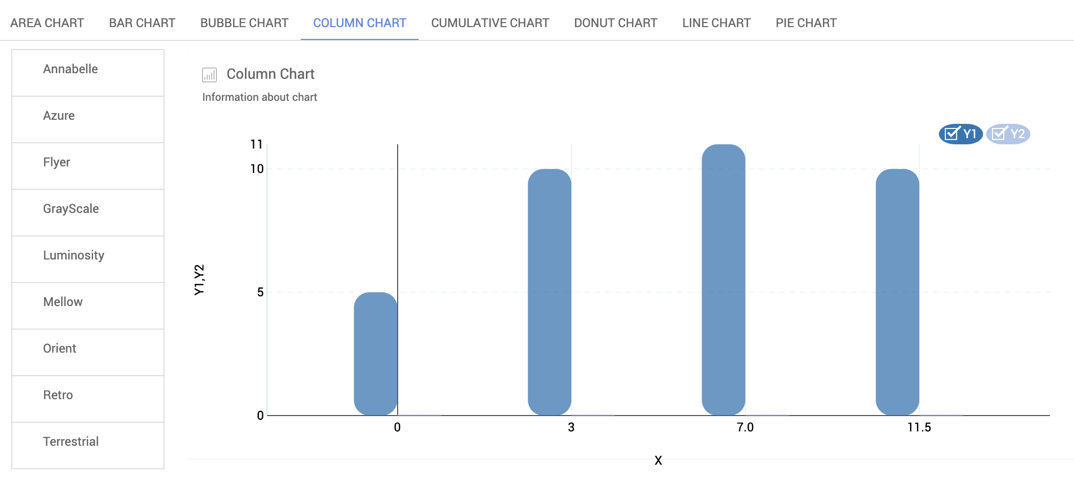 - Hovering mouse over any column displays the values of X and Y-Axis for that data point.
