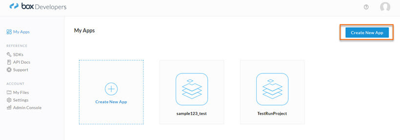 5. To open the Box API platform, click here. The Box API gives access to secured content management system within your own app.