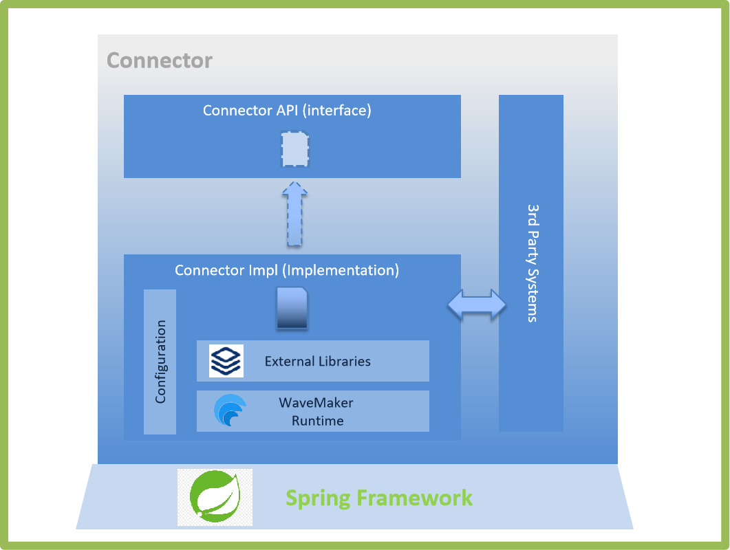 One or more Connectors can be used inside a WaveMaker Application. Connectors are orchestrated through Java Services.