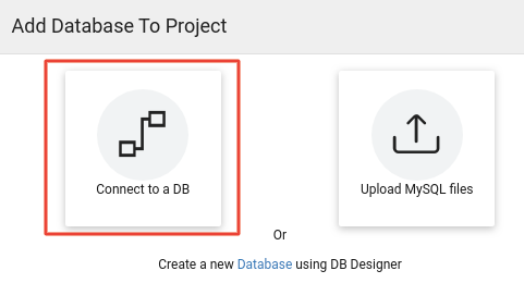 1. Navigate to the Databases section and click on the plus icon to add the Database to the project. From the popup, choose Connect To a DB option.