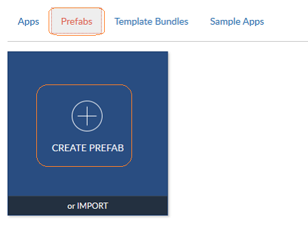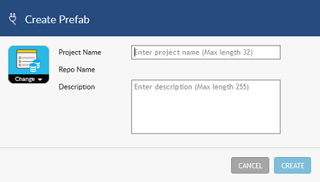1. From the Prefab tab in Project Dashboard, click on the Create Prefab icon.