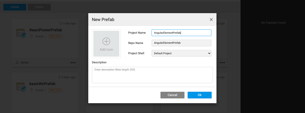 • Create a Prefab project using the Prefab tab of the Project Dashboard.