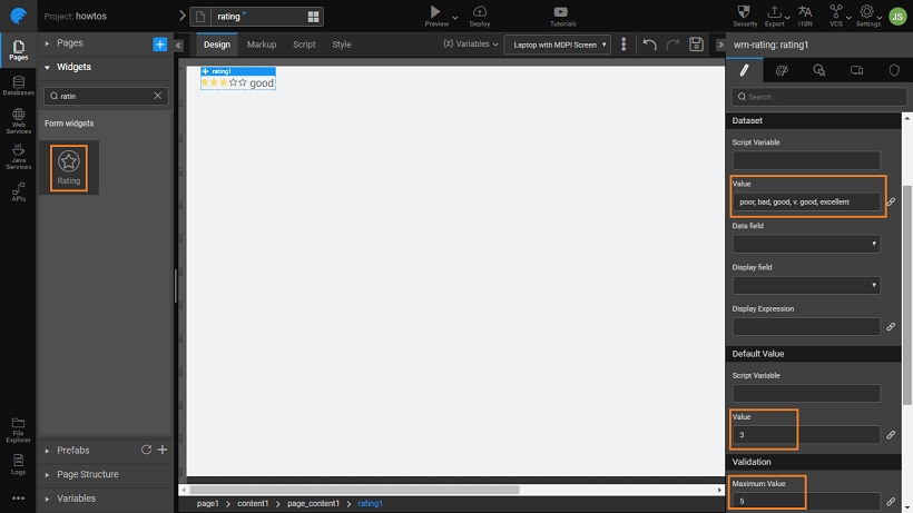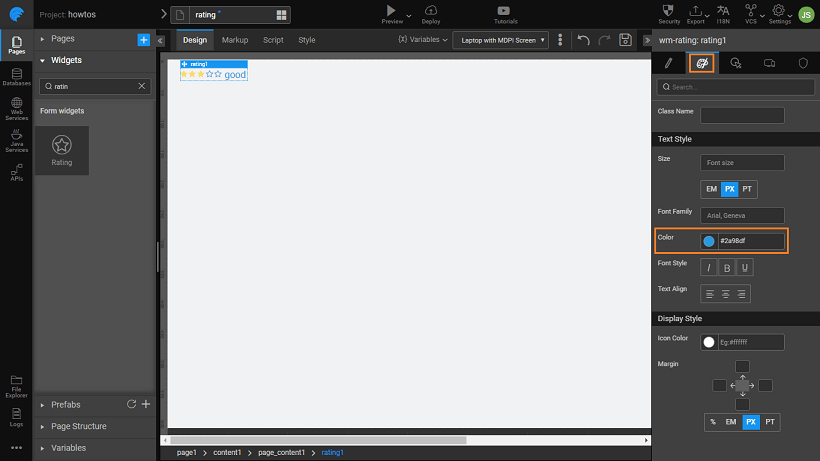 4. Select Show Captions property, this will display the value of the selected rating. It unchecked user will see the value on hover over the rating.
