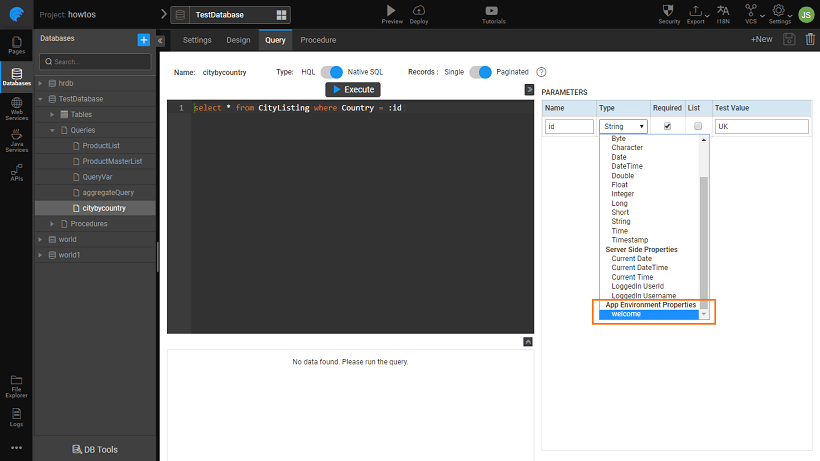 2. Specify ‘welcome’ with value as ‘Welcome to WaveMaker’.