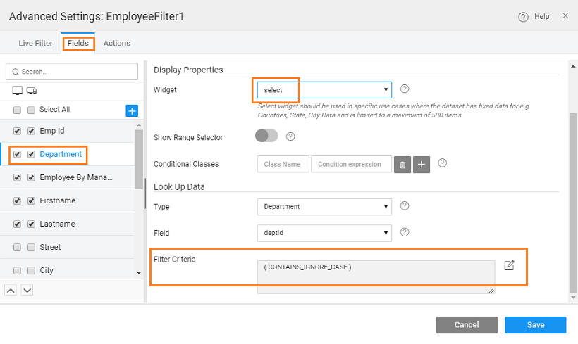 Using Filter Criteria for a Data and Live Widgets