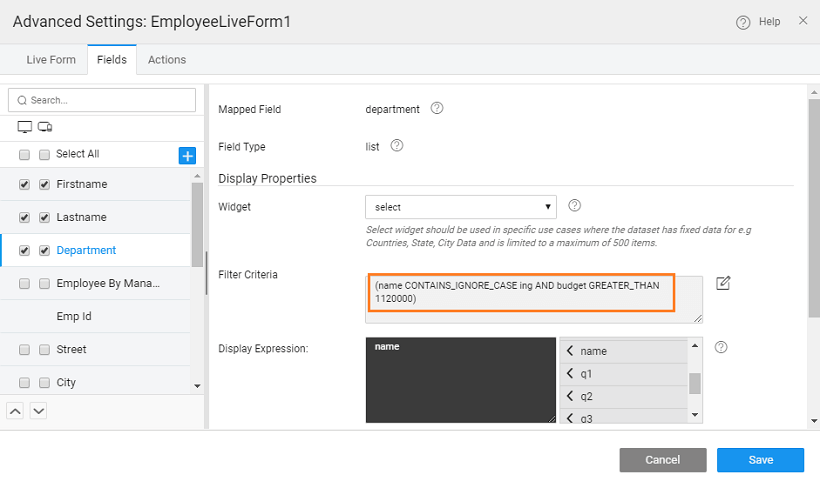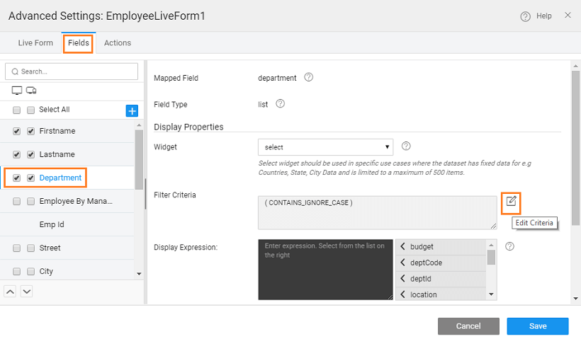 Steps: We are using the example of a Live Form. Same can be implemented for Live Filter and Data Table with Quick Edit and Inline Editable layouts, with some changes as mentioned in the next section.