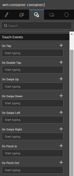 These gestures can be set from the Events property of the concerned Widget.