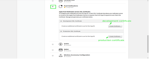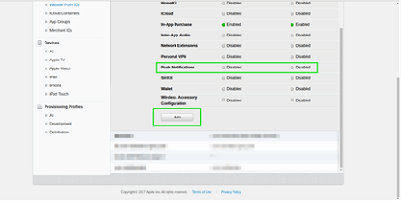 1. Edit the app id created above and open push notification section.