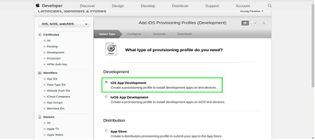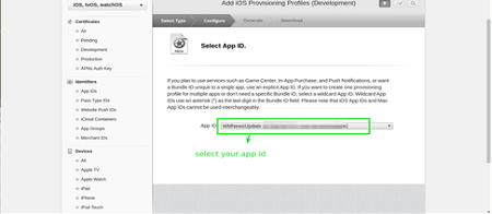 A provisioning profile has to be created for the app id created above: