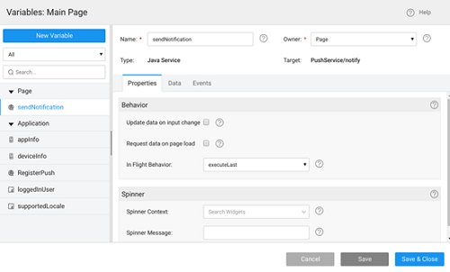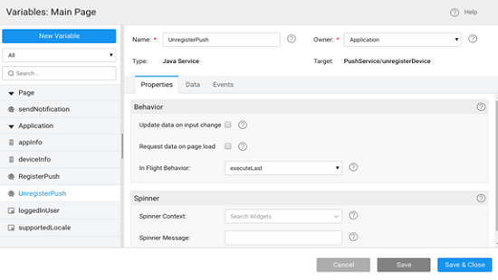 1. Create a service variable named RegisterPush to register the device to receive push notifications.