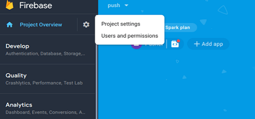 1. Open Firebase console. Open your app that was created above.