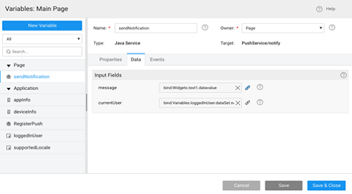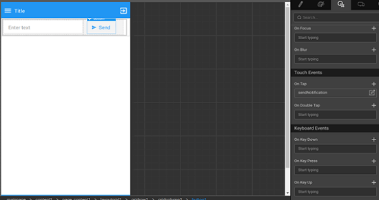 1. On Send button tap, invoke the sendNotification service variable created above.Enter the text and click on button, push message will be delivered to the devices.