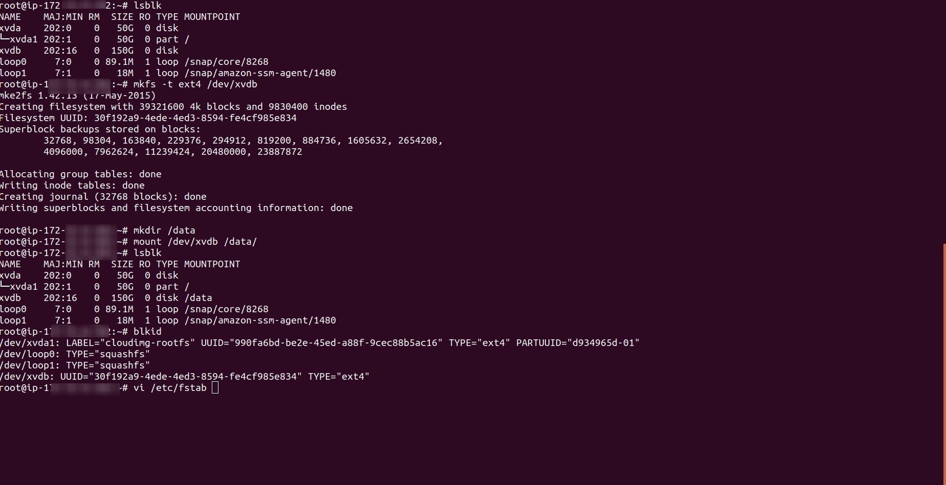 mkfs -t ext4 /dev/xvdb