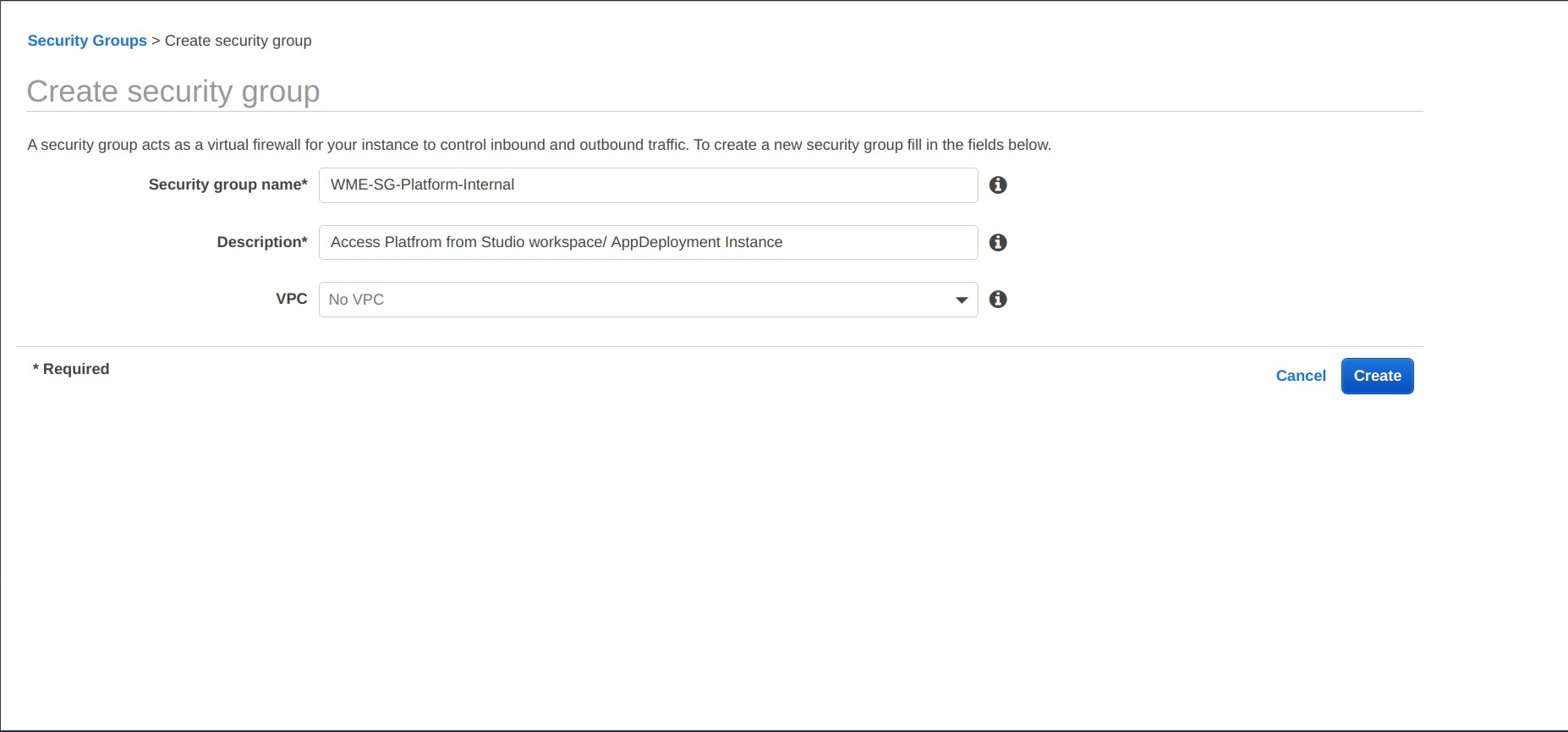 Creating WME-SG-Platform-Internal Security Group