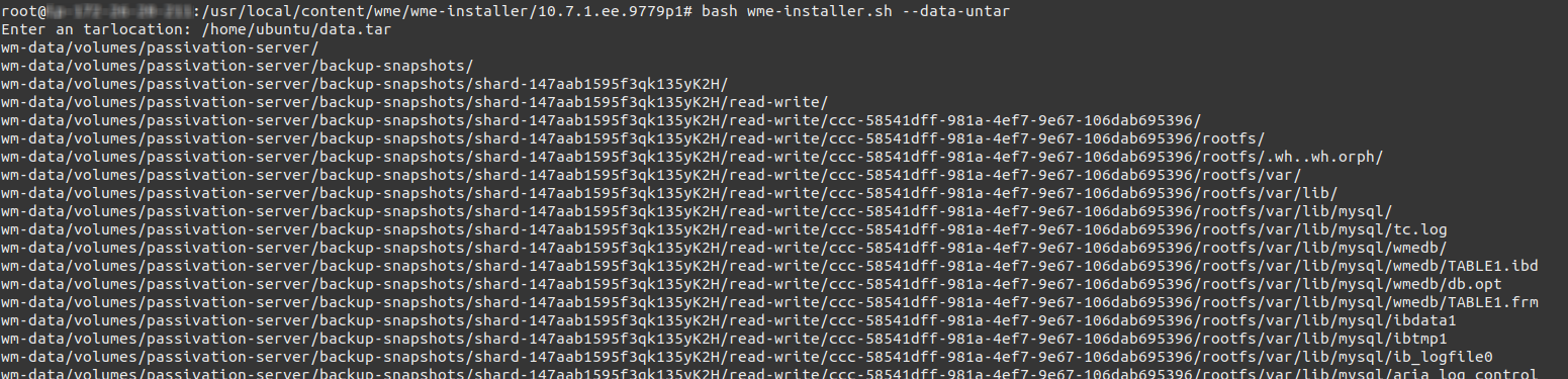 • Copy the generated data.tar to secure location on new WME Platform Instance or to any cloud storage services.