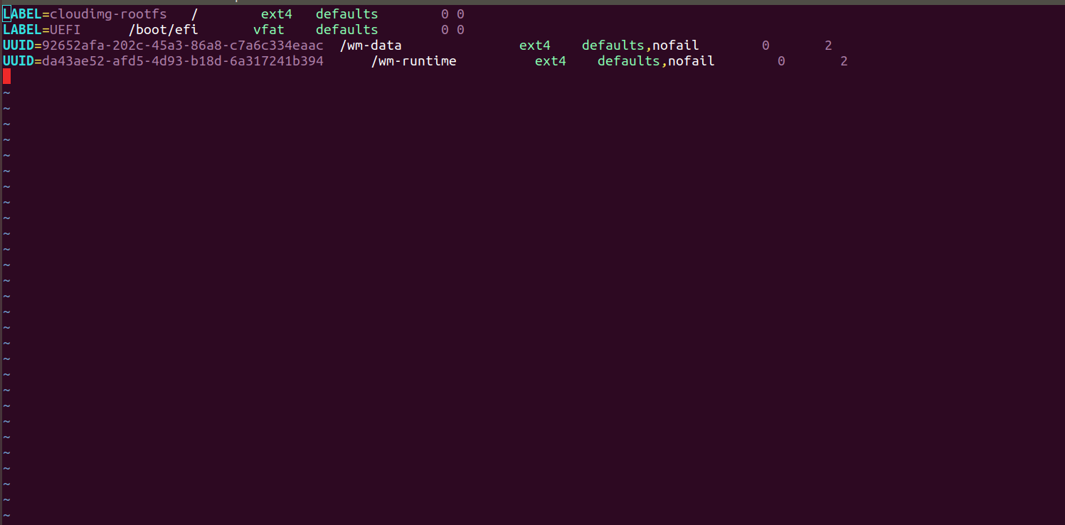 UUID=<block-device_2-UUID> /wm-runtime ext4 defaults ,nofail 0 2