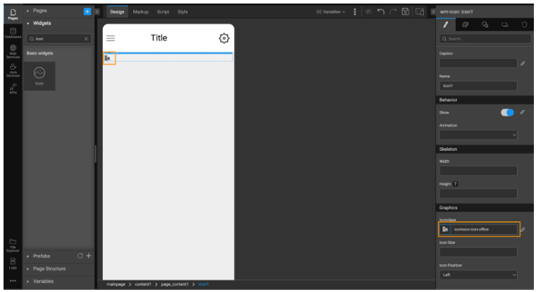 - Go to a Page to drag and drop the Icon widget.
