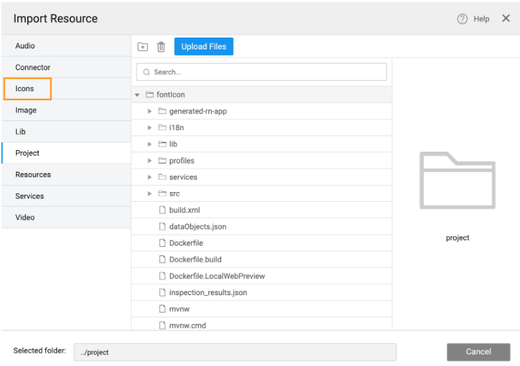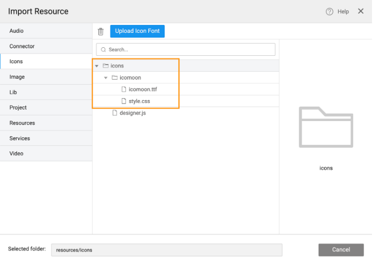 - Click Import Font Icon to open the Import Resources dialog.