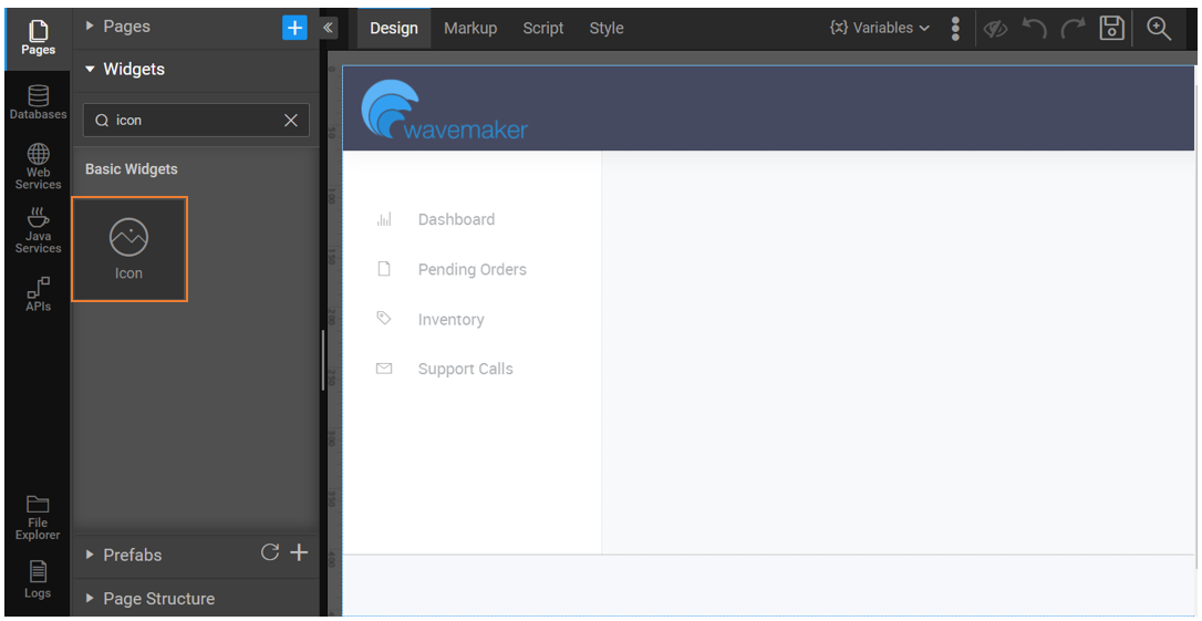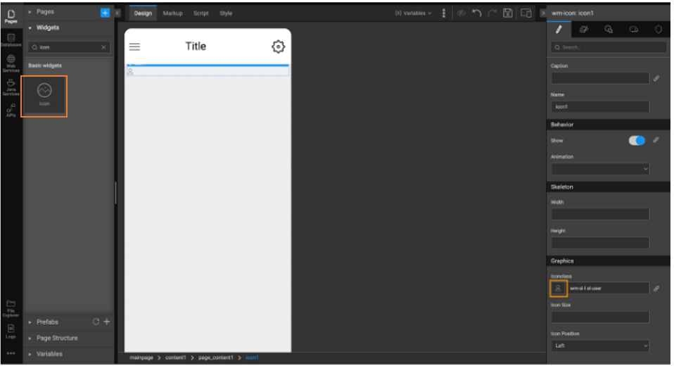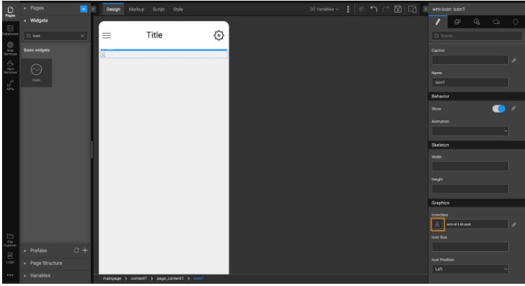 - Go to a Page to drag and drop the Icon widget.